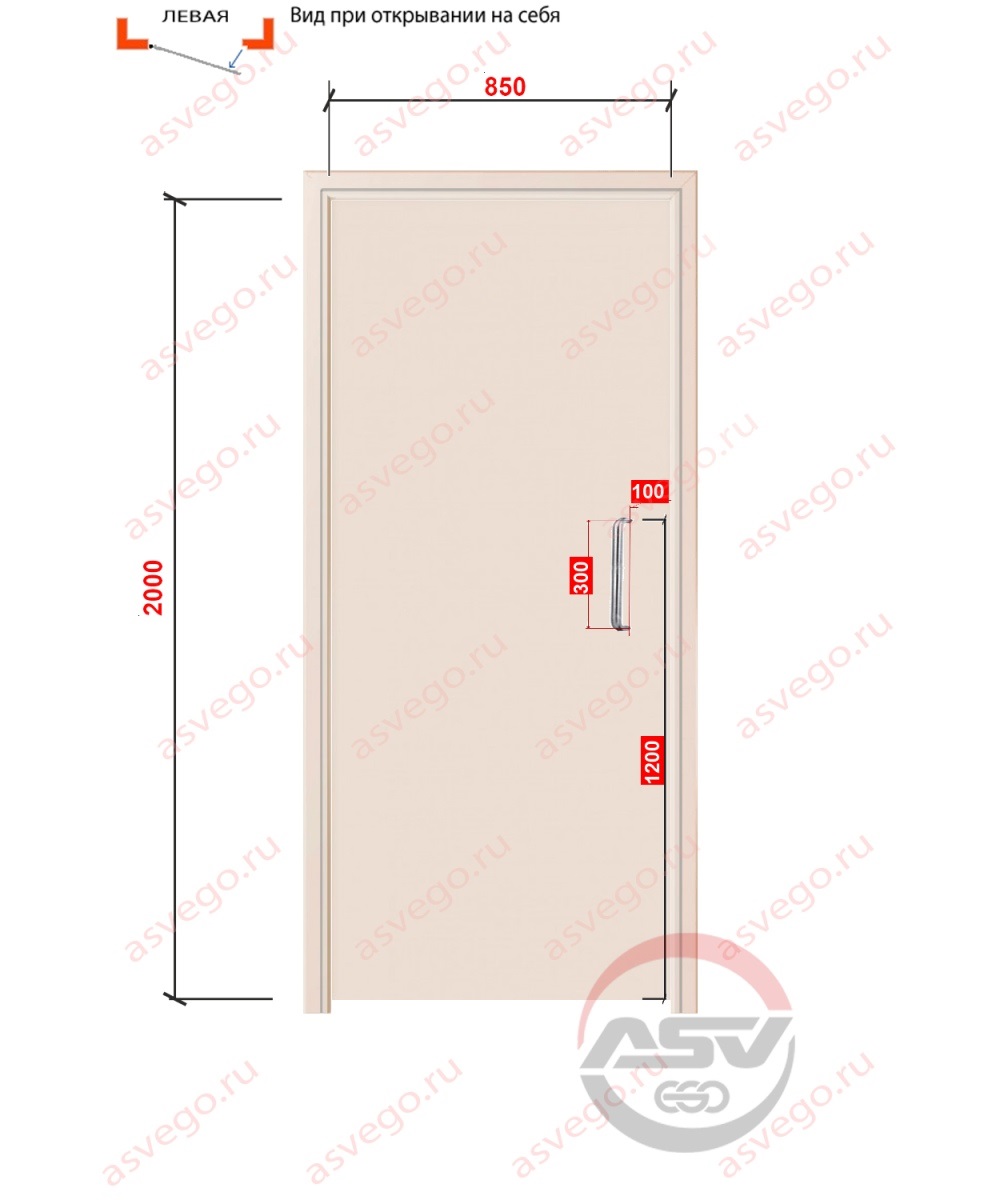 Описание параметров: Количество створок:одностворчатая; Тип открывания двери:распашная; Модификация полотна:глухое; Материал полотна:пластик; Отделка полотна:ПВХ; Толщина полотна:38; Комплектация:коробка; Цвет:Кремовый 9001; Высота полотна мм:2000; Ширина полотна мм:850; Тип ручки:скоба своя; Тип ручки:нажимная заводская на втором полотне; Расстояние между осевыми точками крепления ручки скобы мм:300; Расстояние от края полотна со стороны замка до центра отверстия под ручку скобу мм:100; Расстояние от нижнего края полотна до центра отверстия под ручку скобу мм:1200; Фрезеровка под петли:нет; Отверстие под ручку:есть; Фрезеровка под замок:заводская; Алюминевый торец:нет; Алюминевый торец на втором полотне:нет; Автоматический порог:нет; Сторона открывания:левое; Тип дверного профиля:ДКТ80;