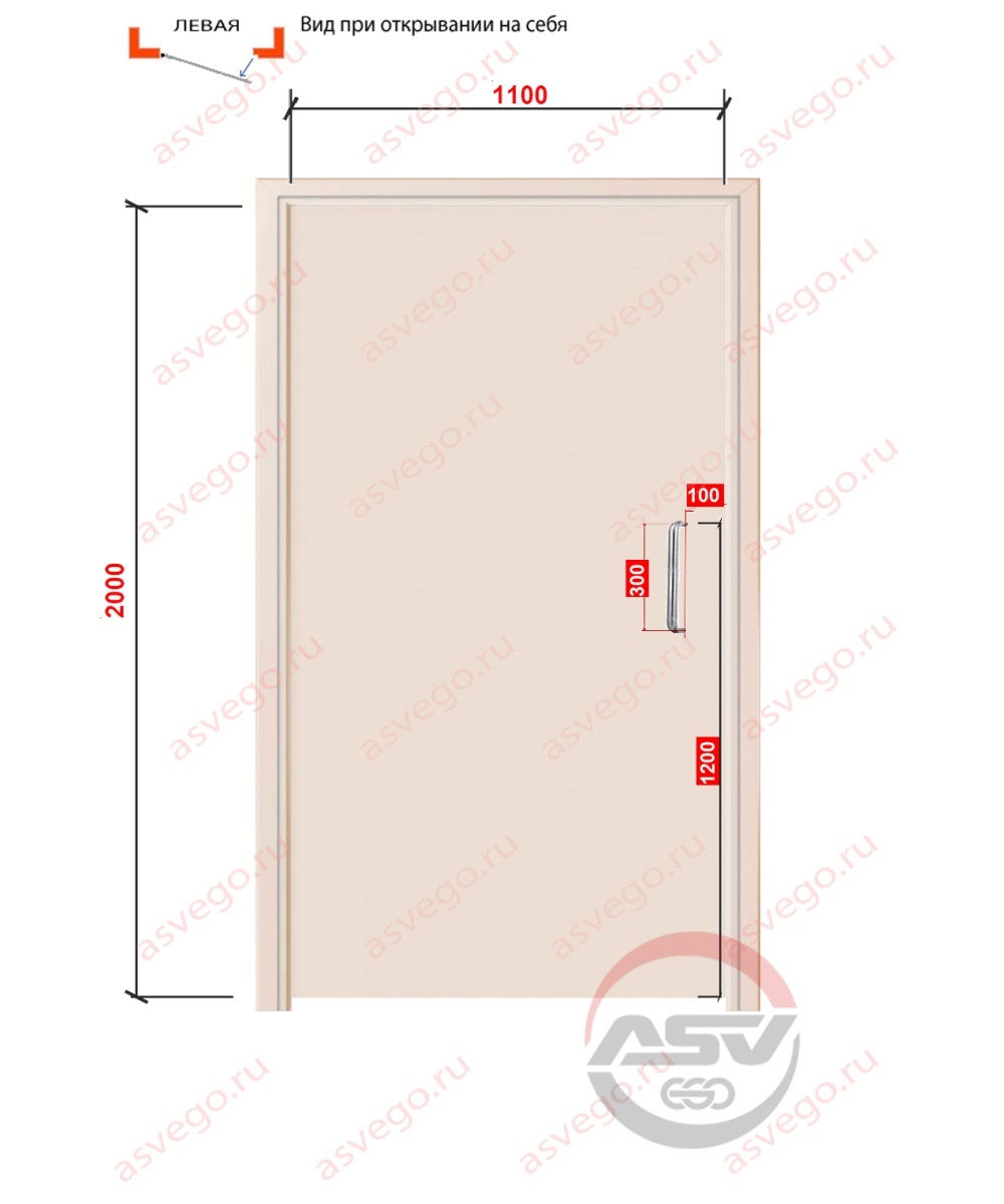 Описание параметров: Количество створок:одностворчатая; Тип открывания двери:распашная; Модификация полотна:глухое; Материал полотна:пластик; Отделка полотна:ПВХ; Толщина полотна:38; Комплектация:коробка; Цвет:Кремовый 9001; Высота полотна мм:2000; Ширина полотна мм:1100; Тип ручки:скоба своя; Тип ручки:нажимная заводская на втором полотне; Расстояние между осевыми точками крепления ручки скобы мм:300; Расстояние от края полотна со стороны замка до центра отверстия под ручку скобу мм:100; Расстояние от нижнего края полотна до центра отверстия под ручку скобу мм:1200; Фрезеровка под петли:нет; Отверстие под ручку:есть; Фрезеровка под замок:заводская; Алюминевый торец:нет; Алюминевый торец на втором полотне:нет; Автоматический порог:нет; Сторона открывания:левое; Тип дверного профиля:ДКТ80;