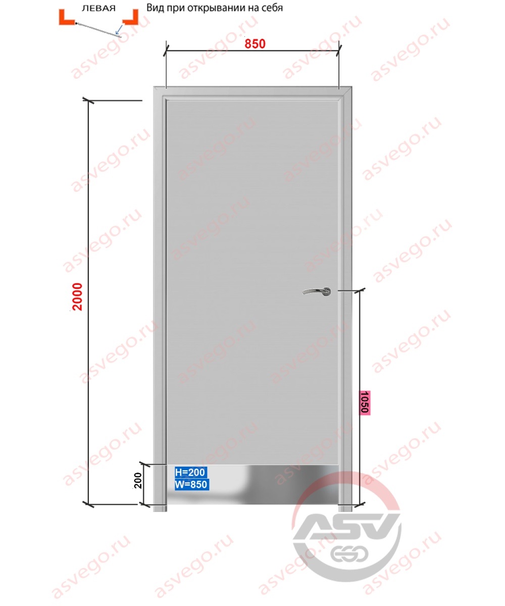 Описание параметров: Количество створок:одностворчатая; Тип открывания двери:распашная; Модификация полотна:глухое; Материал полотна:пластик; Отделка полотна:ПВХ; Толщина полотна:38; Комплектация:коробка; Цвет:Серый 7035; Высота полотна мм:2000; Ширина полотна мм:850; Высота нижней нержавеющей накладки мм:200; Ширина нижней нержавеющей накладки мм:840; Расстояние от нижнего края полотна до верхней кромки нижней нержавеющей накладки мм:200; Тип ручки:нажимная заводская; Тип ручки:нажимная заводская на втором полотне; Расстояние от нижнего края полотна до центра отверстия под ручку мм:1050; Фрезеровка под петли:нет; Отверстие под ручку:есть; Фрезеровка под замок:заводская; Алюминевый торец:нет; Алюминевый торец на втором полотне:нет; Автоматический порог:нет; Сторона открывания:левое; Тип дверного профиля:ДКТ80;