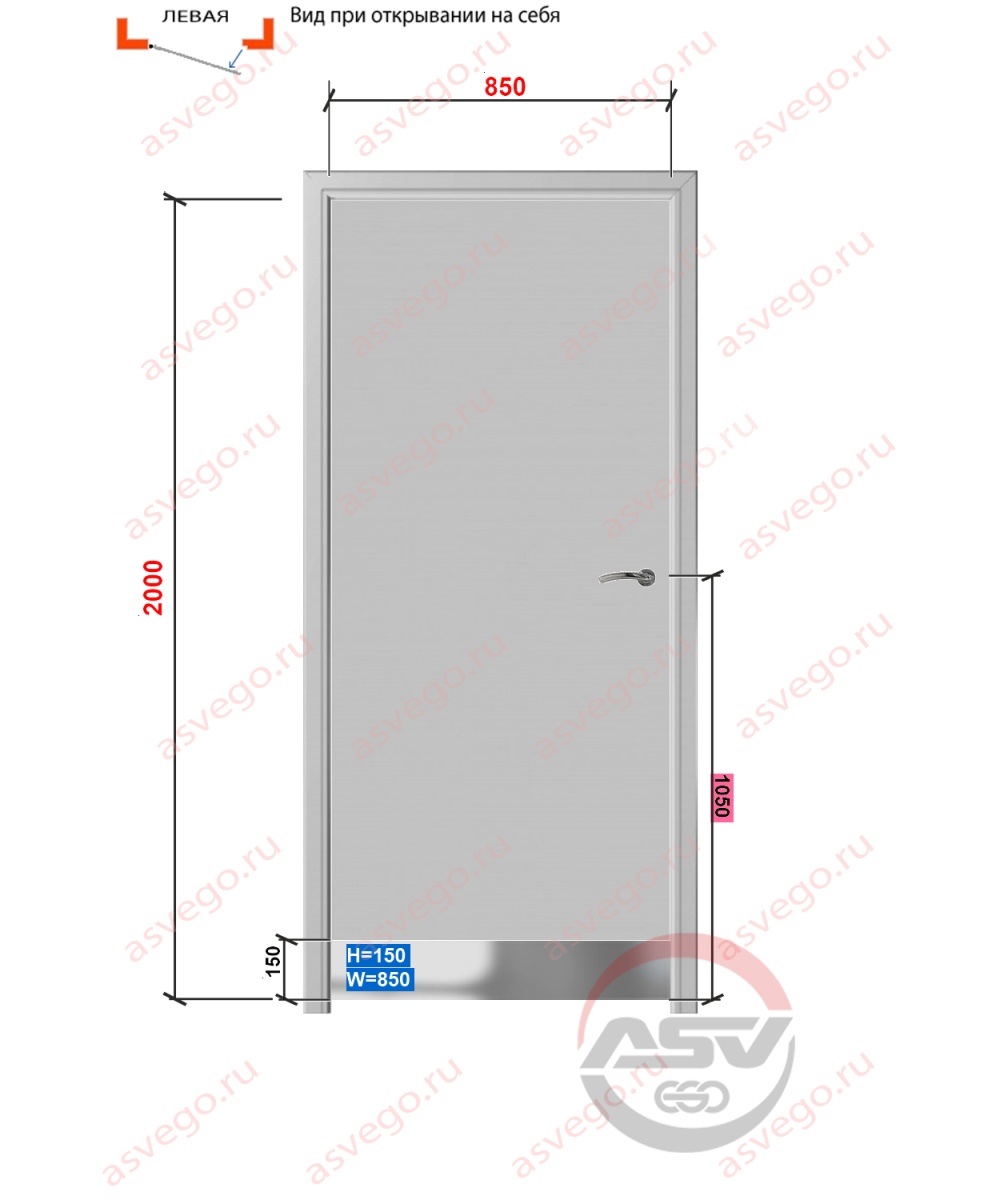 Расстояние от нижнего края полотна до центра отверстия под ручку мм:1050;