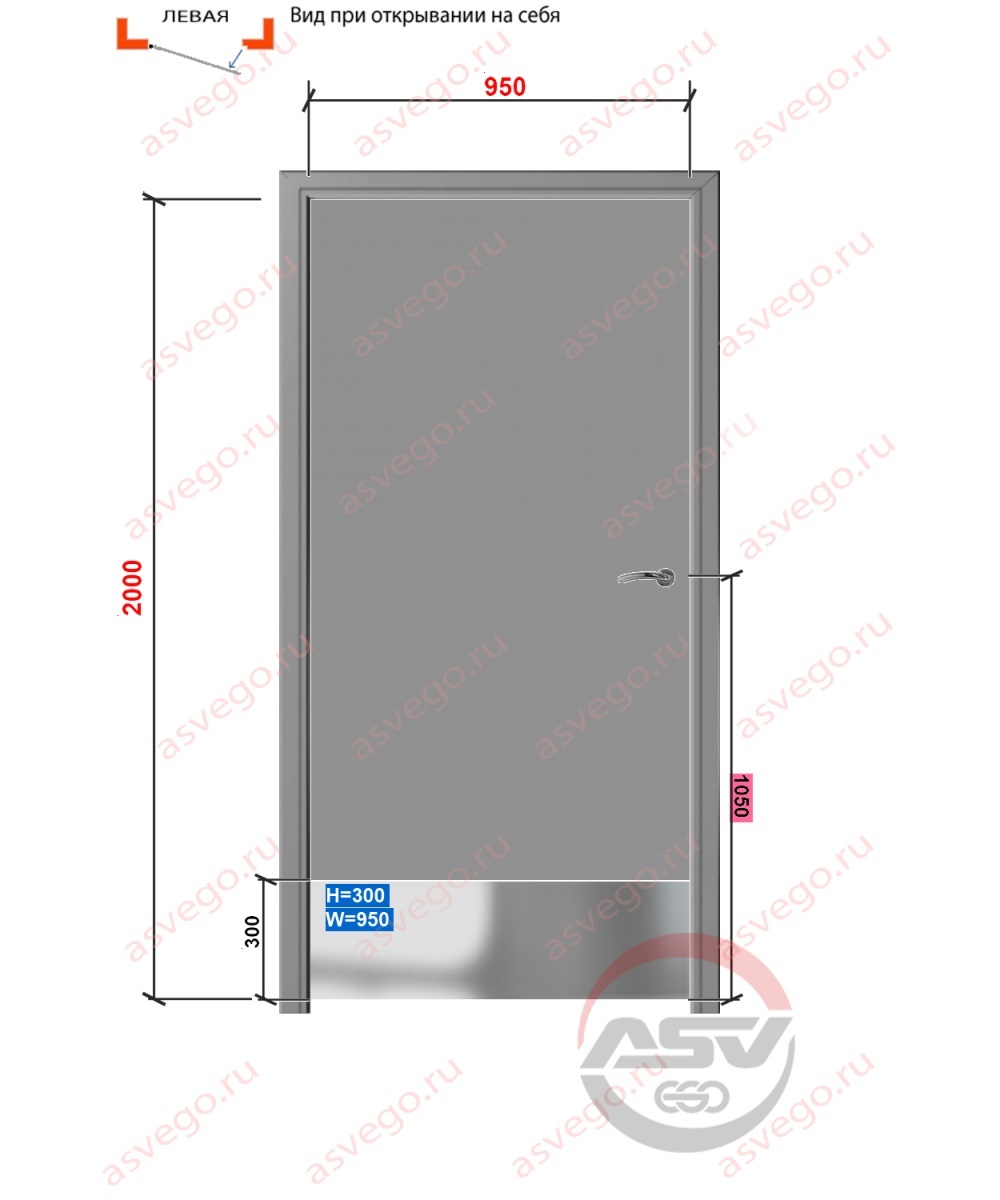 Расстояние от нижнего края полотна до центра отверстия под ручку мм:1050;