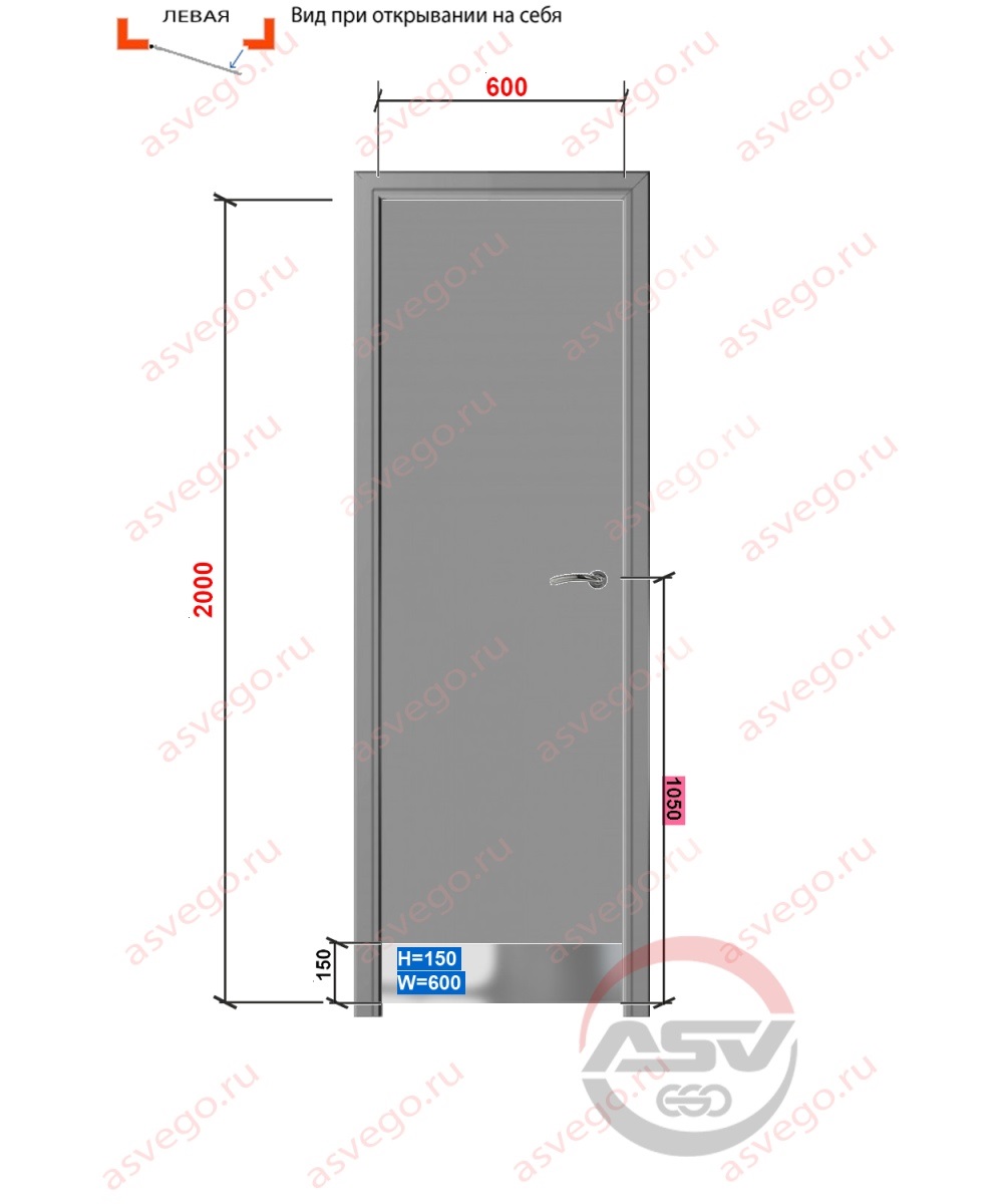 Расстояние от нижнего края полотна до центра отверстия под ручку мм:1050;