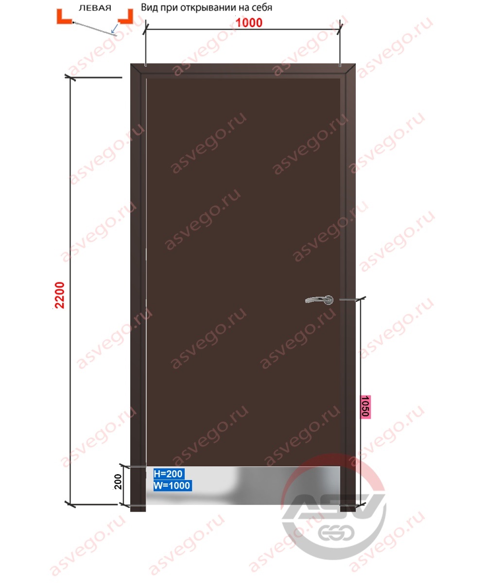 Расстояние от нижнего края полотна до центра отверстия под ручку мм:1050;