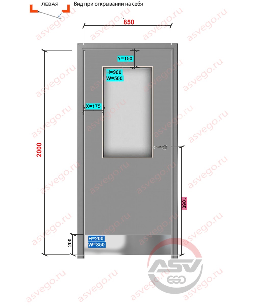 Расстояние от нижнего края полотна до центра отверстия под ручку мм:1050;