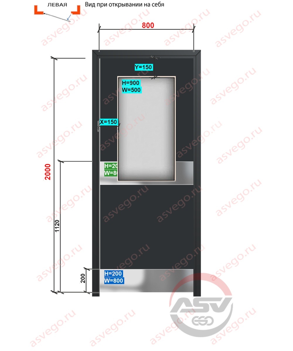 Расстояние от верхнего края полотна до верхней кромки проема под остекление мм:150;